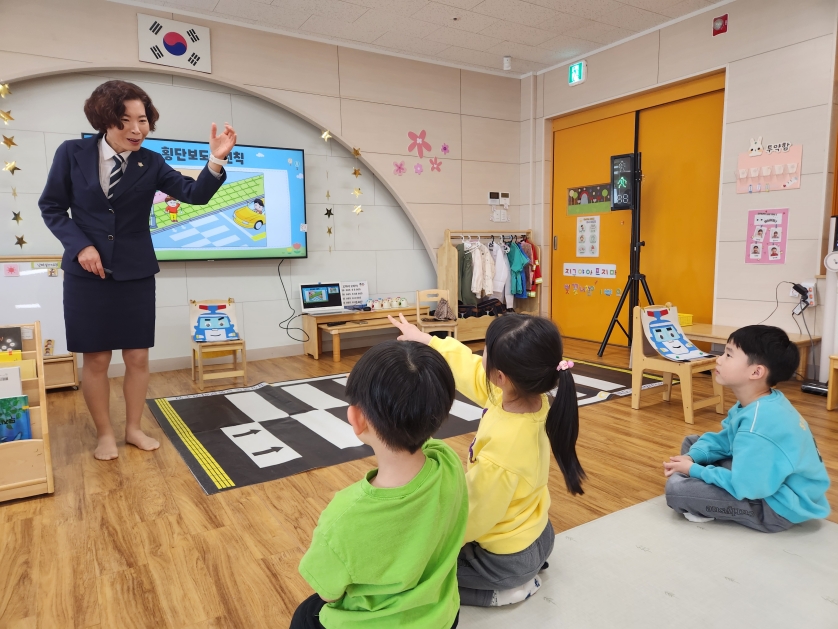 교육 내용은 횡단보도 안전하게 건너기, 신호등 의미 이해하기, 차량 사각지대 알기, 안전벨트의 중요성 등 일상생활과 밀접한 주제를 중심으로 진행되었다. 특히 실제 도로 상황을 모의로 구성한 체험존에서는 아이들이 보행자의 역할을 체험하며 「멈춘다-살핀다–손을 든다-운전자를 본다-건넌다」의 5원칙을 반복적으로 실습하며 횡단보도 건너기 안전 수칙을 익히는 데 중점을 두었다.