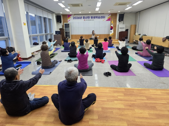 | 증산면 행정복지센터(면장 장동언)에서는 지난 4월 7일부터 수강생 32명이 참석한 가운데 증산면 평생학습센터 『요가 교실』을 운영하고 있다.