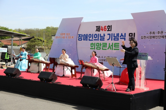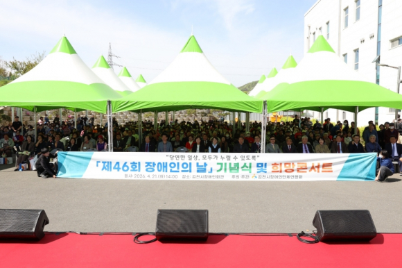 | 김천시장애인단체연합회(회장권한대행 윤안숙)는 4월 21일, 김천시장애인회관 야외주차장에서 지역 장애인과 가족, 자원봉사자 등 600여명이 참석한 가운데 ‘제46회 장애인의 날 기념식 및 희망콘서트’를 성황리에 개최했다.